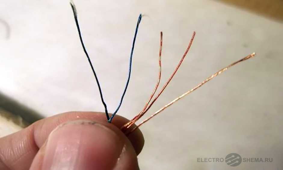 Чаще всего микрофонный провод только выглядит как один проводок, а на деле это два провода: тонюсенький проводок в белой ПВХ-изоляции полностью обмотанный медным эмалированным проводом (в бесцветной эмали). Что-то вроде такого: