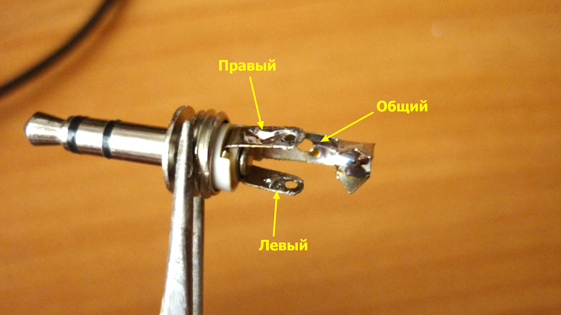 Эта картинка еще доступнее объясняет, куда припаивать провода к штекеру наушников: