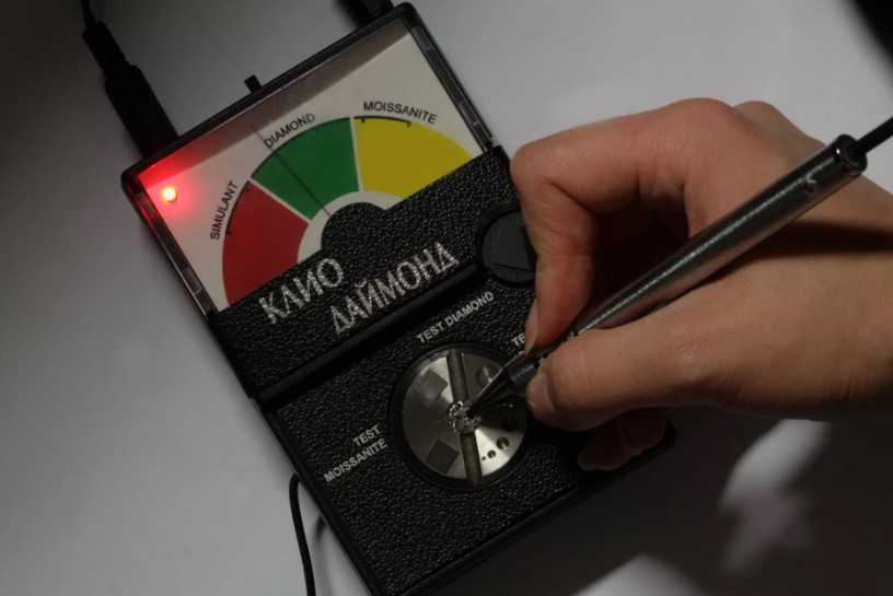 Синтетические камни — полупроводники, то есть проводят электричество. У экспертов есть установки, позволяющие оценить степень проводимости и сделать вывод о том, настоящий ли камень.