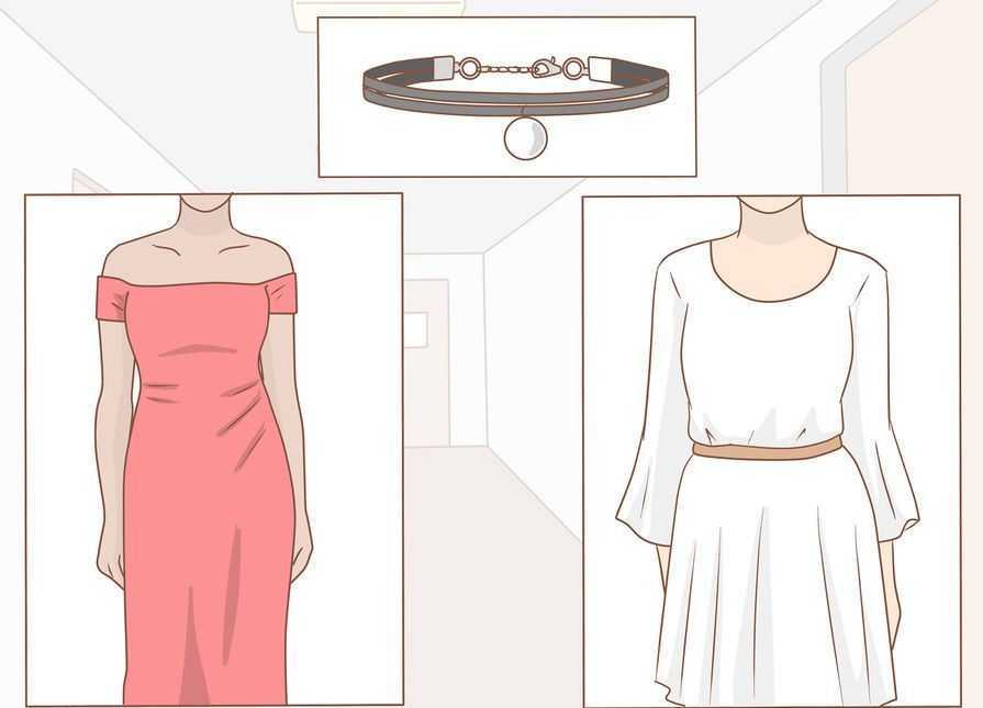 Но можно компенсировать вышеописанный эффект, подобрав правильную одежду (платье, топ, блузку или что-то еще). Можно пойти по наиболее простому пути – и противопоставить закрытой чокером шее открытые плечи или глубокое декольте. Именно так носили в 18-19-м веках бархотку – популярное тогда украшение, являвшееся бархатной лентой, которая охватывала дамскую шейку. К бархоткам надевали вечерние (и не только вечерние) платья по моде тех веков – с весьма значительным декольте.