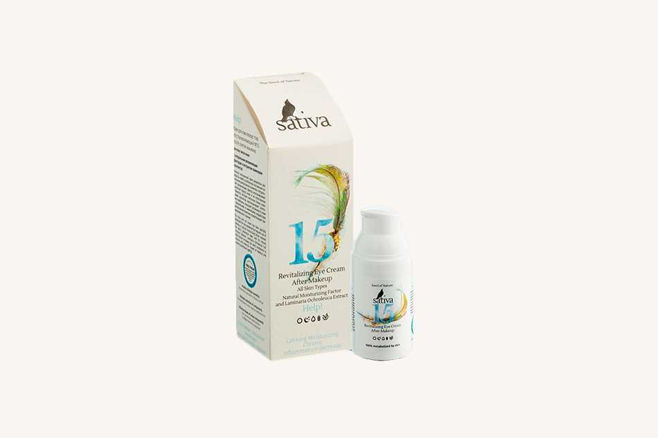 Ну и, конечно, мои любимые кремы от Sativa. Года три назад «подсадила» на них жена. Стоят, конечно, выше среднего, но очень хорошие. Впитываются отлично, не оставляют жирного блеска на коже. Удобно, что они пронумерованы, – проще выбирать и покупать. Всегда беру у них крем для лица и кожи вокруг глаз.