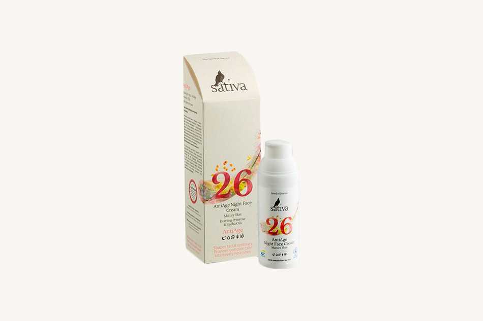 Для дневного и ночного ухода за лицом использую тоже средства от Sativa. Днем – пенка для очищения и антивозрастной крем. Иногда (не каждый день) использую скраб. Ночью – антивозрастные кремы для лица и вокруг глаз.
