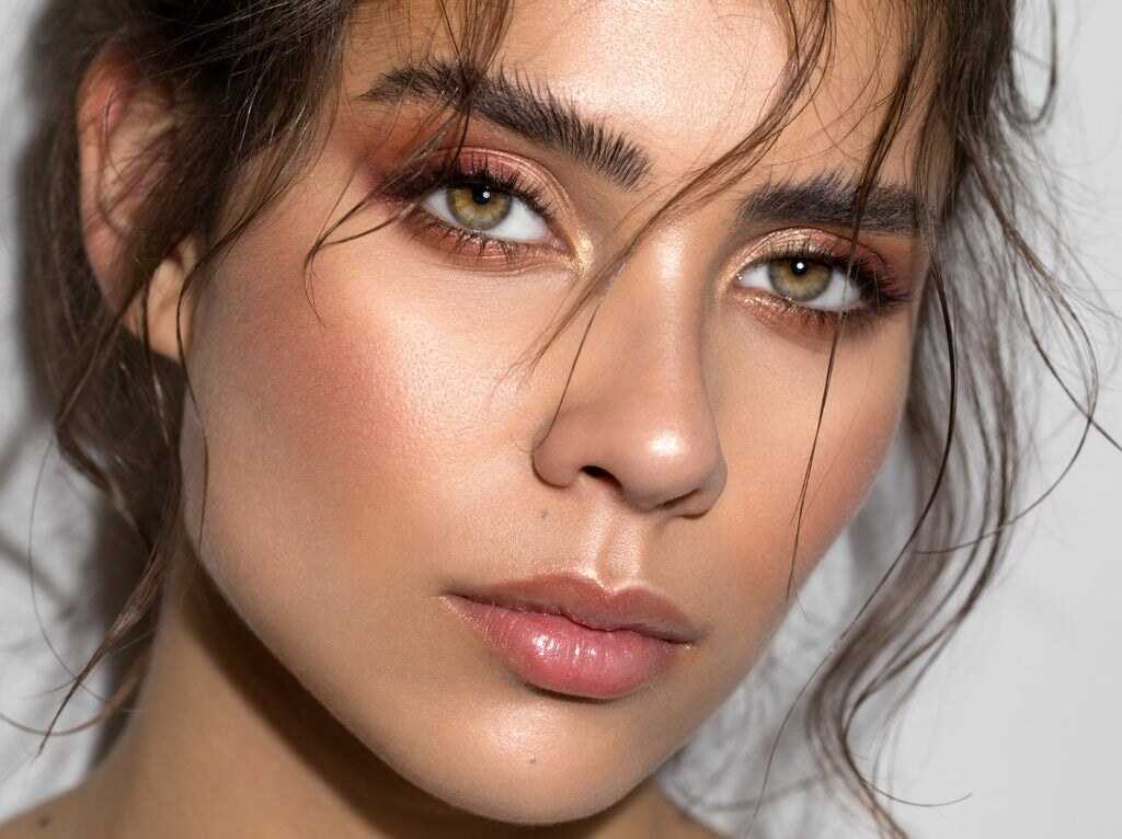 - Скулы покрываются бронзирующим хайлайтером, который немного следует растушевать.