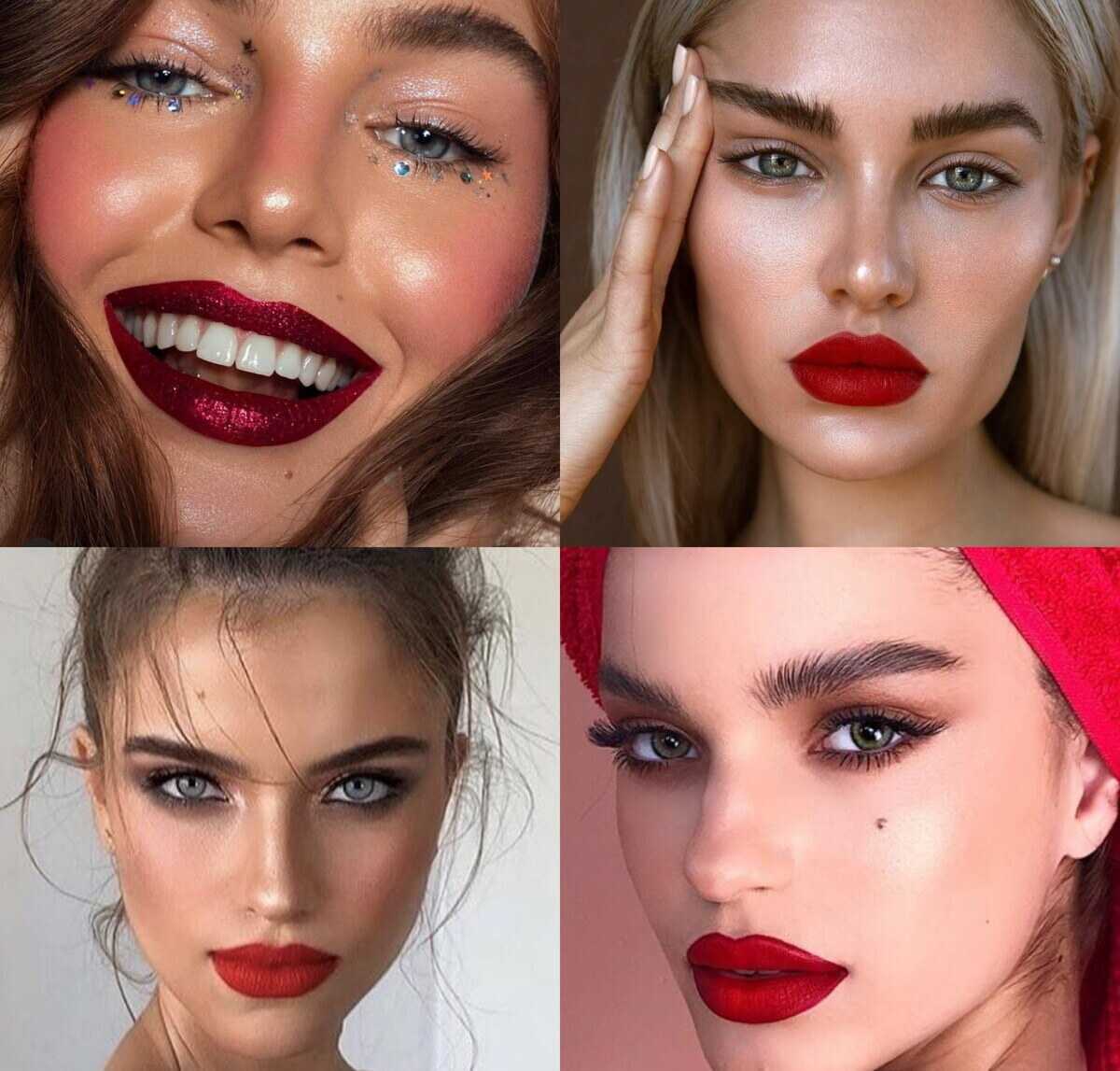 Накрашенные губы сегодня – лишняя роскошь, так как вся помада останется на внутренней поверхности защитной маски. Но для любительниц использовать закрепитель макияжа или участницам фотосессий предлагается красить губы яркой помадой сочных, привлекающих взгляд, оттенков — клубничных, вишневых, алых, зрелого вина или бордовых.