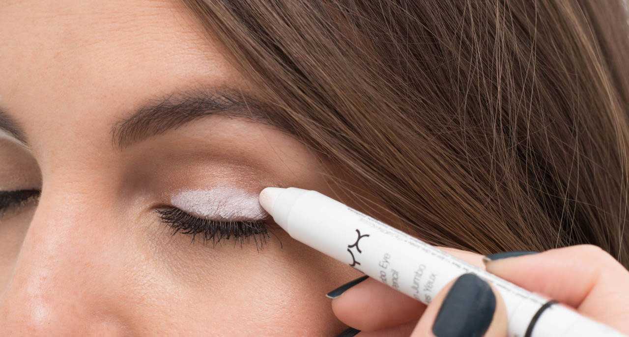 - Контурный карандаш выступает как база под тени. Косметологи пользуются телесным или белым карандашом, рисуют широкую полосу, растушевывают, далее приступают к обычному make up.