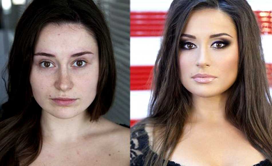 Девушка без макияжа, и с макияжем консилером и хайлайтером