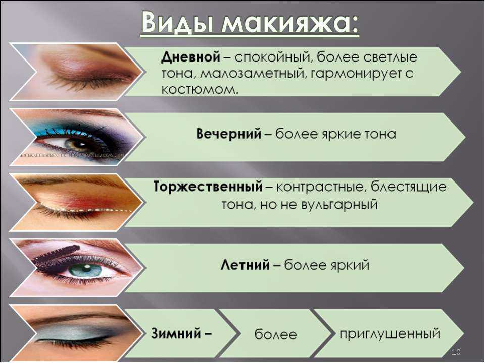 - тип макияжа (дневной, вечерний, и т. п);