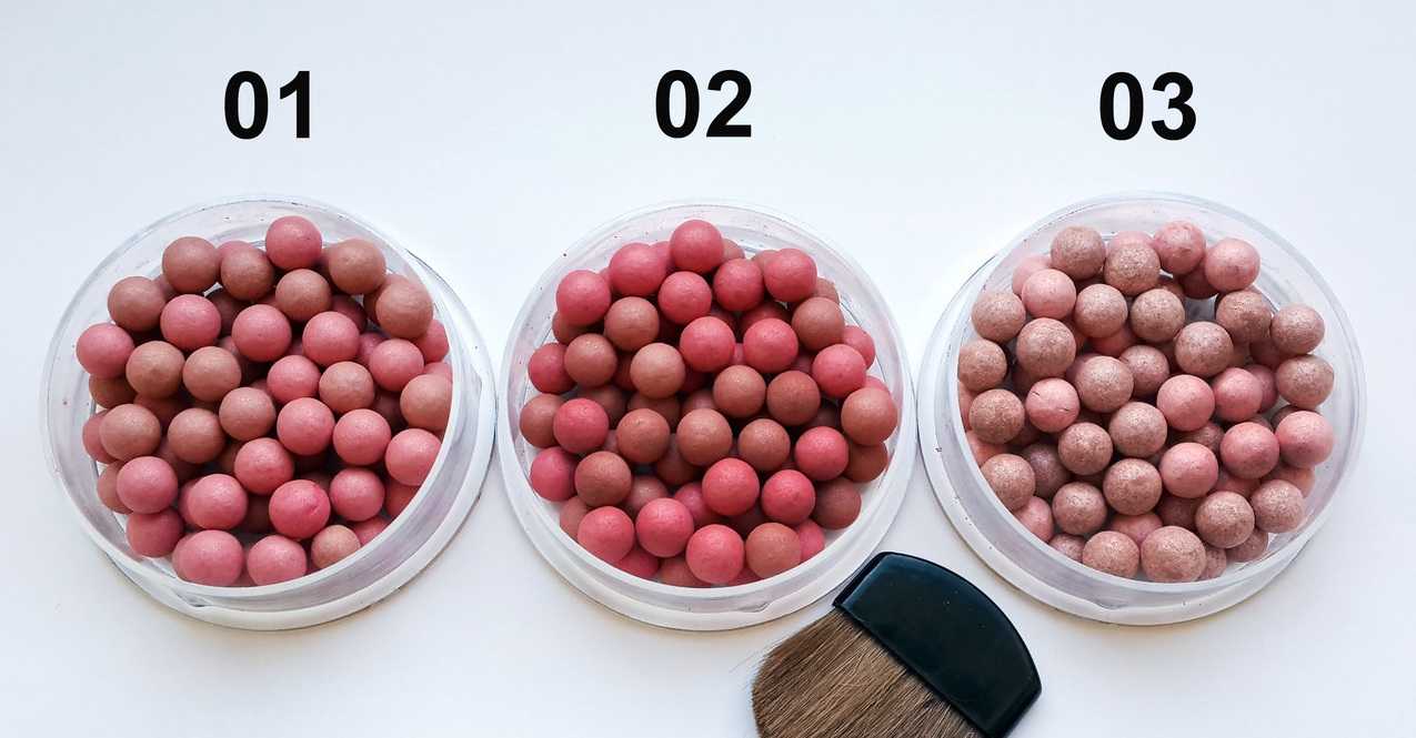 Пудра в шариках – это туго спрессованная пудра, мелкого помола. Она существует матовая и блестящая, с перламутром. Блестящие частички содержат слюду. Светоотражающие элементы пудры бывают крупные и мелкие. Палитра цветов весьма разнообразна — темные, светлые, розовые и разноцветные варианты.