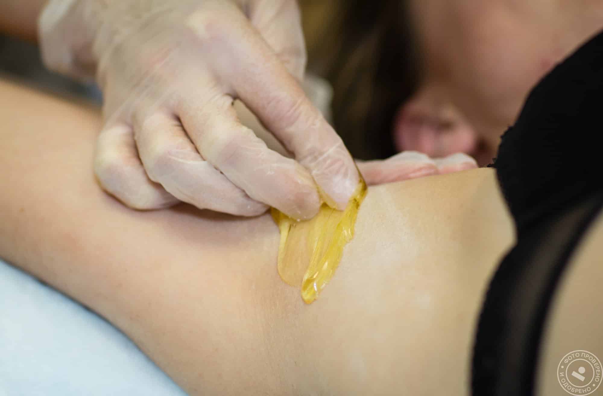 Зато для полной очистки подмышек мастеру требуется всего 2-3 срыва сахарной пасты.