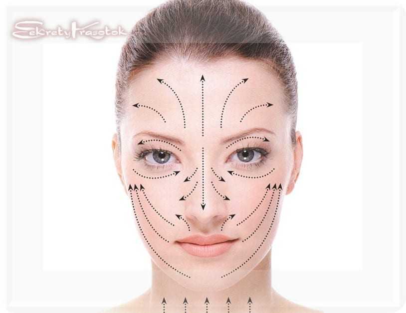 - Нежными медленными движениями нанести тонкий и равномерный слой крема, двигаясь кверху и в стороны, а так же учитывая направление массажных линий.