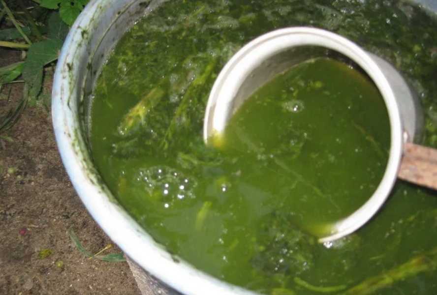 Эти составляющие заложить в тару, перемешать, долить до краев дождевой или отстоянной воды, настоять на протяжении 7 дней в тени. Перед внесением в почву разбавить водой в равных пропорциях.