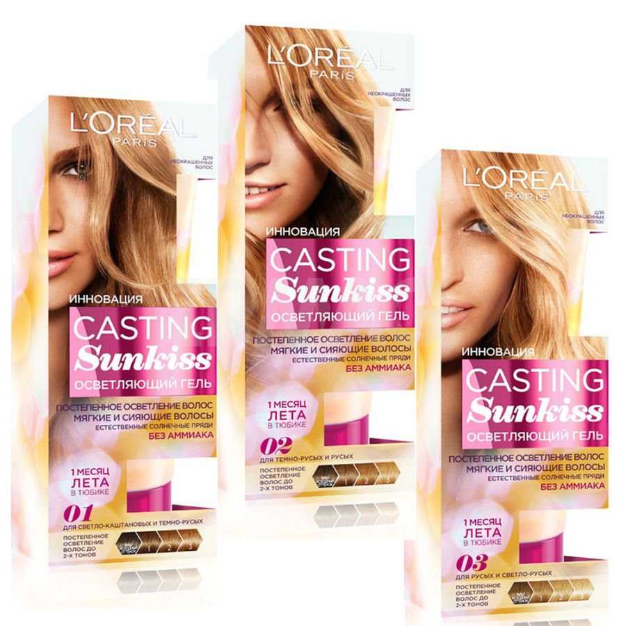 Эта известная марка предлагает удобную в использовании осветляющую стойкую гель-краску Lоreal Paris Casting Sunkiss.