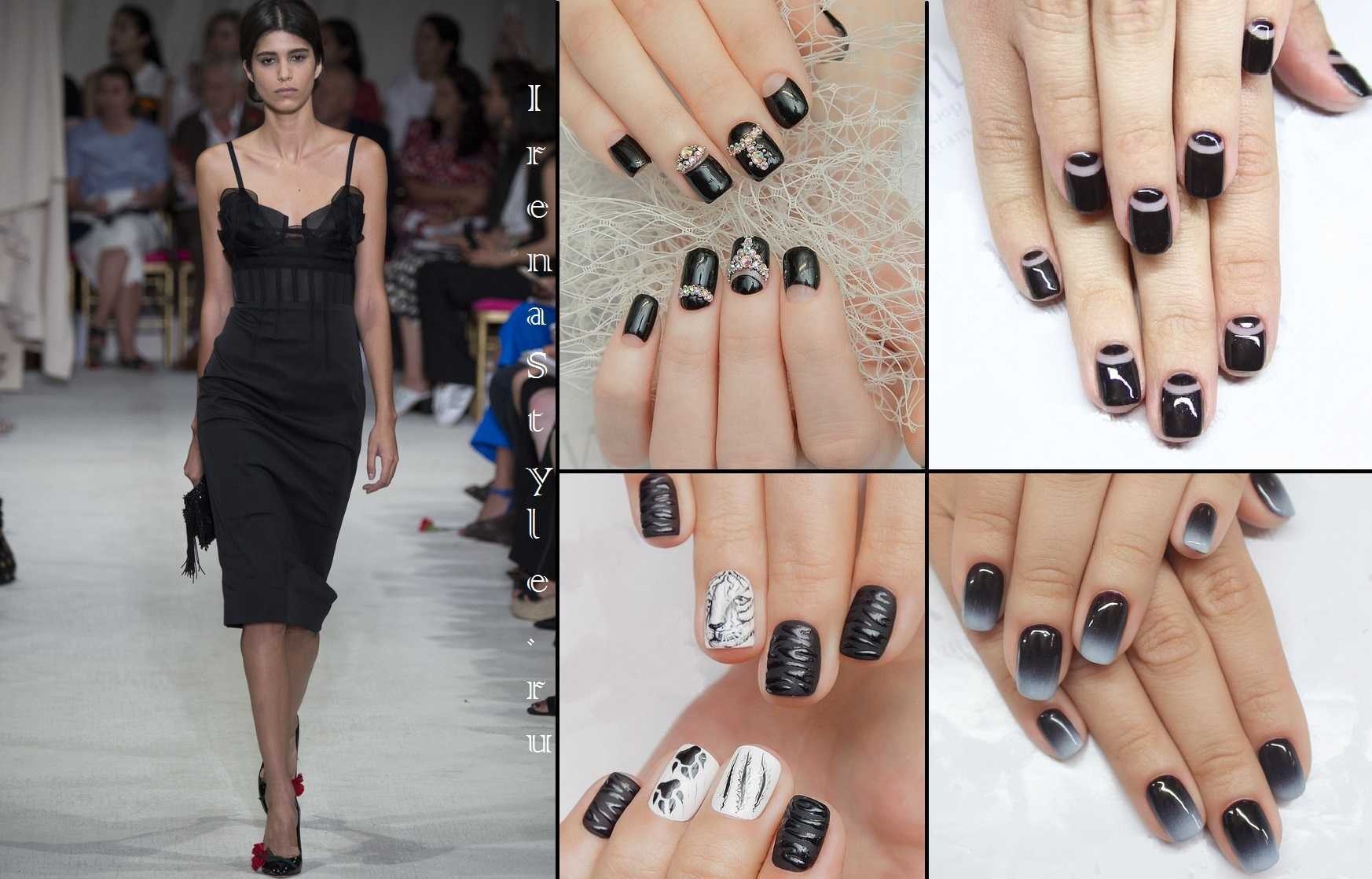 Черный: подойдет, если у вас короткие ногти и не фарфоровый оттенок кожи. Хорошо гармонирует с цветом платья, не выбивается от общего образа.