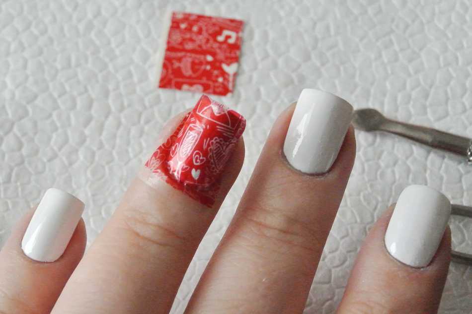 Термонаклейки могут полностью закрывать всю поверхность ногтя или представлять собой полоску прозрачной пленки с узором.