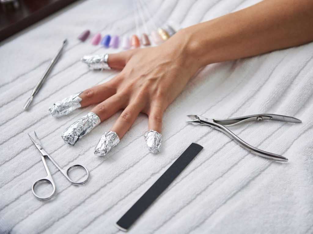 - Смачивают жидкостью для снятия гель-лака тампоны и накладывают на ногти. Сверху на них надевают силиконовые колпачки или оборачивают их фольгой. Нужно подождать 20 минут.