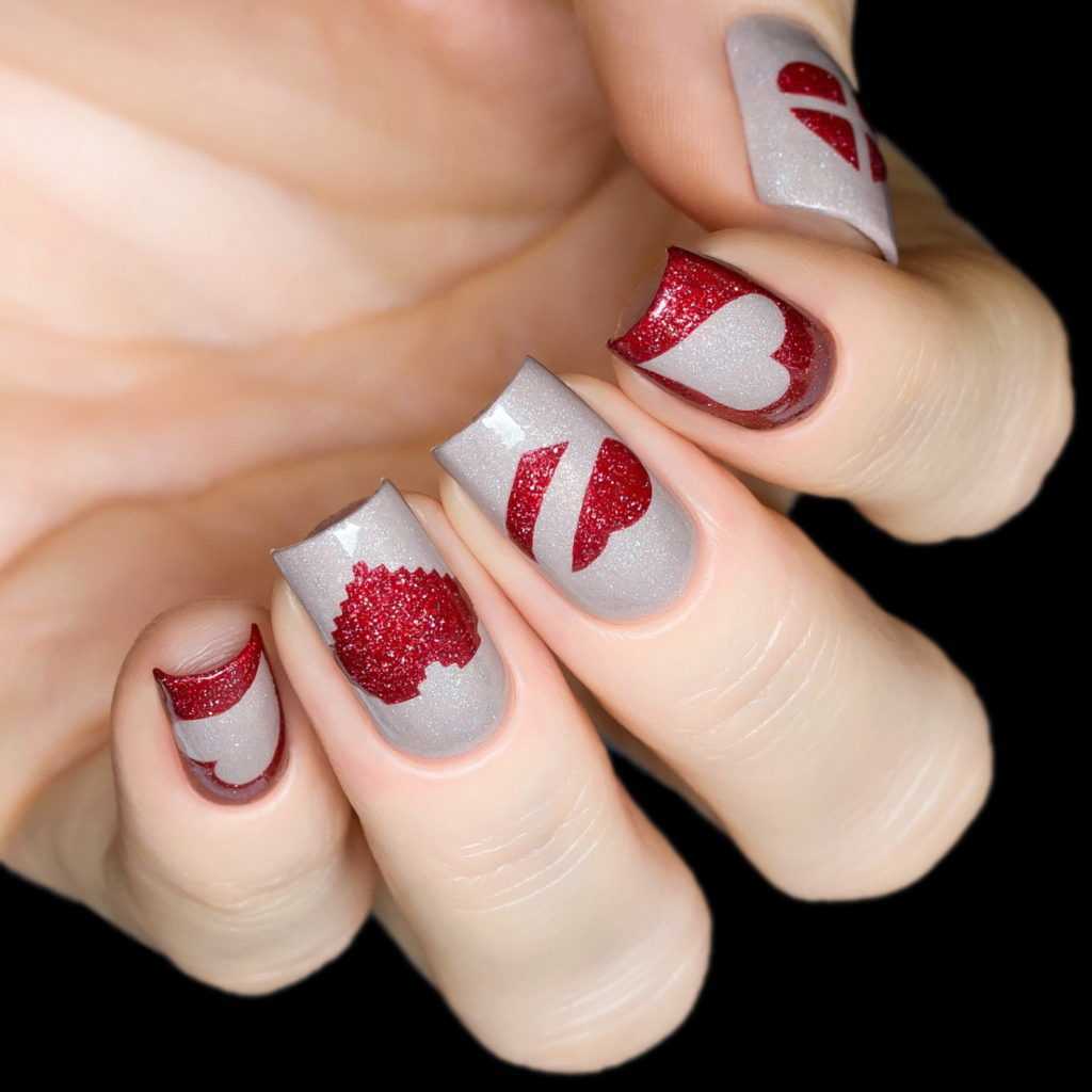 Обратите внимание на красные сердечки глиттеры для ногтей, они также будут актуальны для дизайна ногтей к 14 февраля