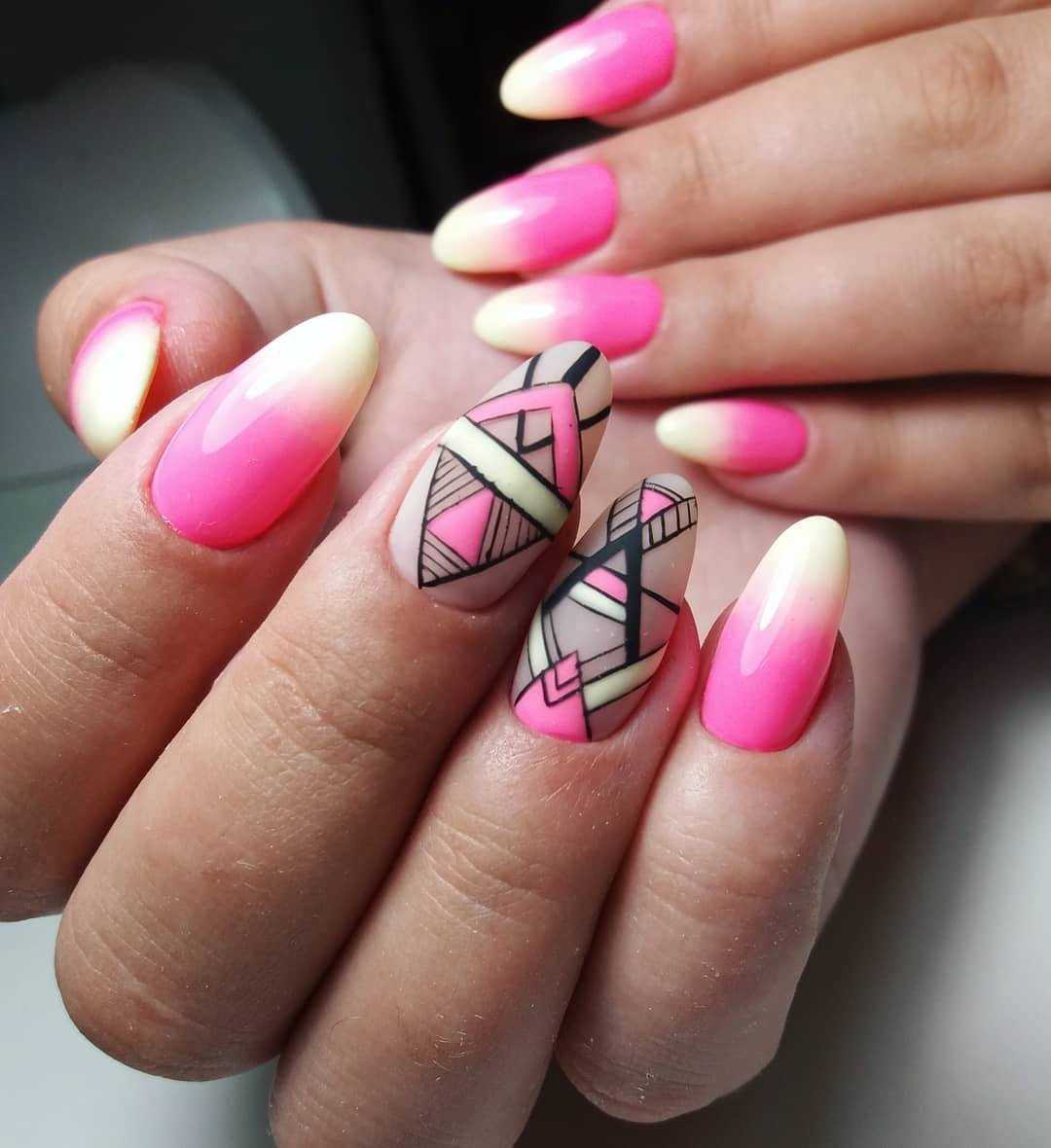 Еще один вариант оформления треугольника – это украсить его градиентом. Подобный декор отлично впишется в общий нейл-арт и не будет противоречить общей минималистической тематике.