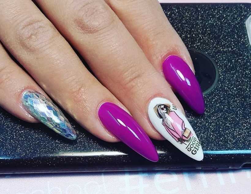 Сиреневый маникюр с дизайном 2019