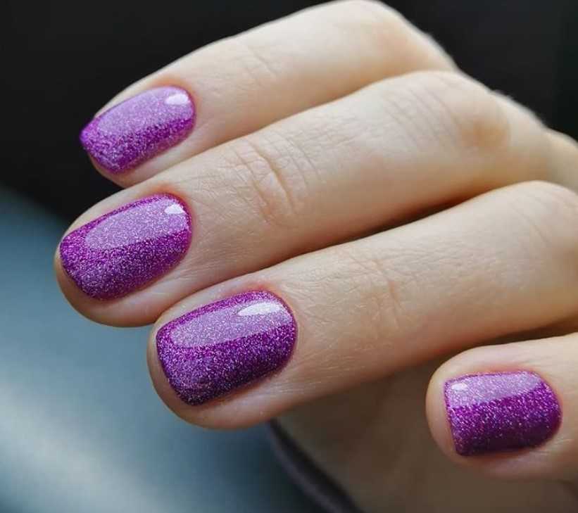 Шиммер и блестки — один из самых популярных способов украшения ногтей. А блестки в фиолетовом исполнении делают образ поистине звездным и запоминающимся