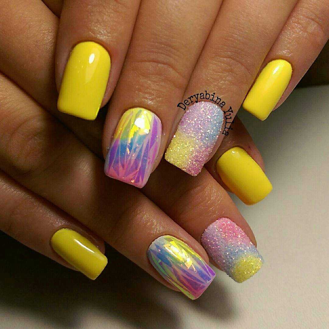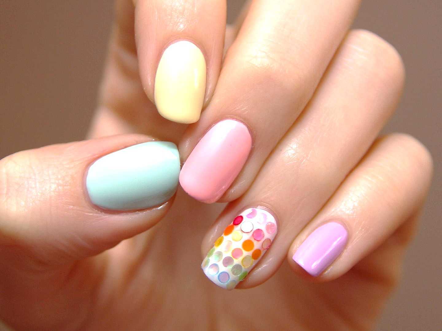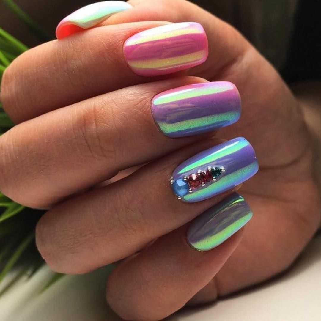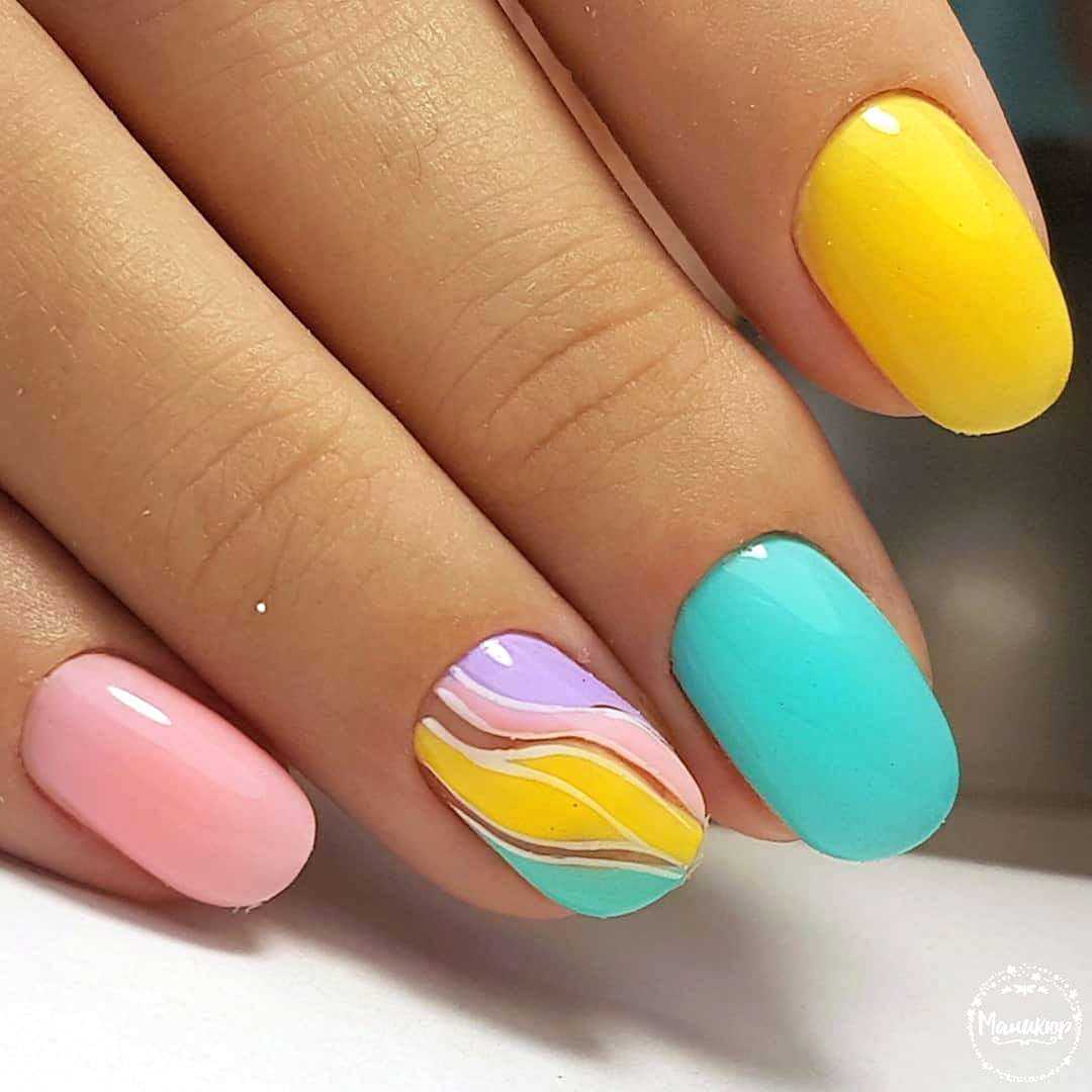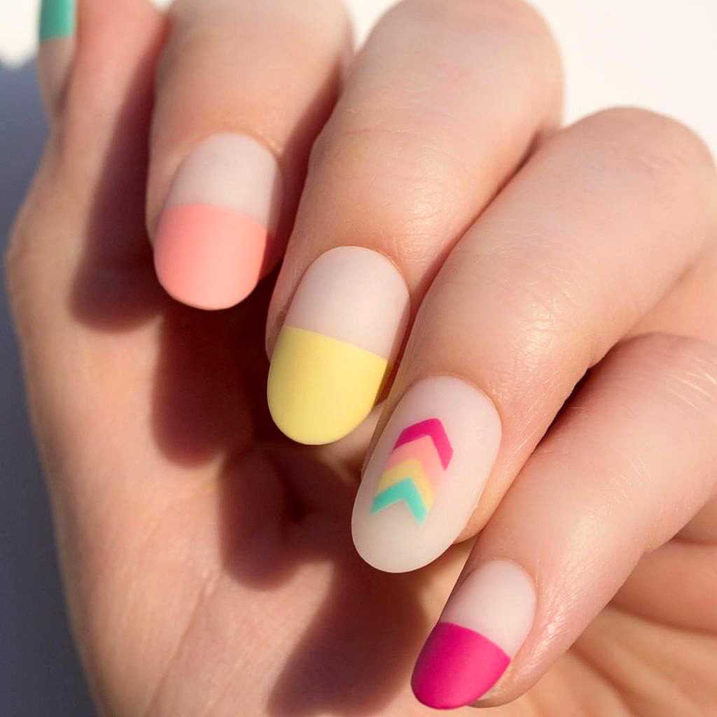 Разноцветный маникюр стал очень популярным благодаря своей универсальности. Любая модница без труда подберет аксессуары и одежду к таким ногтям. В грамотном исполнении такой маникюр легко впишется в самый строгий дресс-код или смело подчеркнет ваше светлое настроение в любую погоду. Спешим выбирать оттенки!