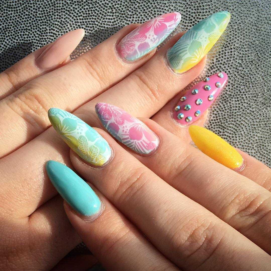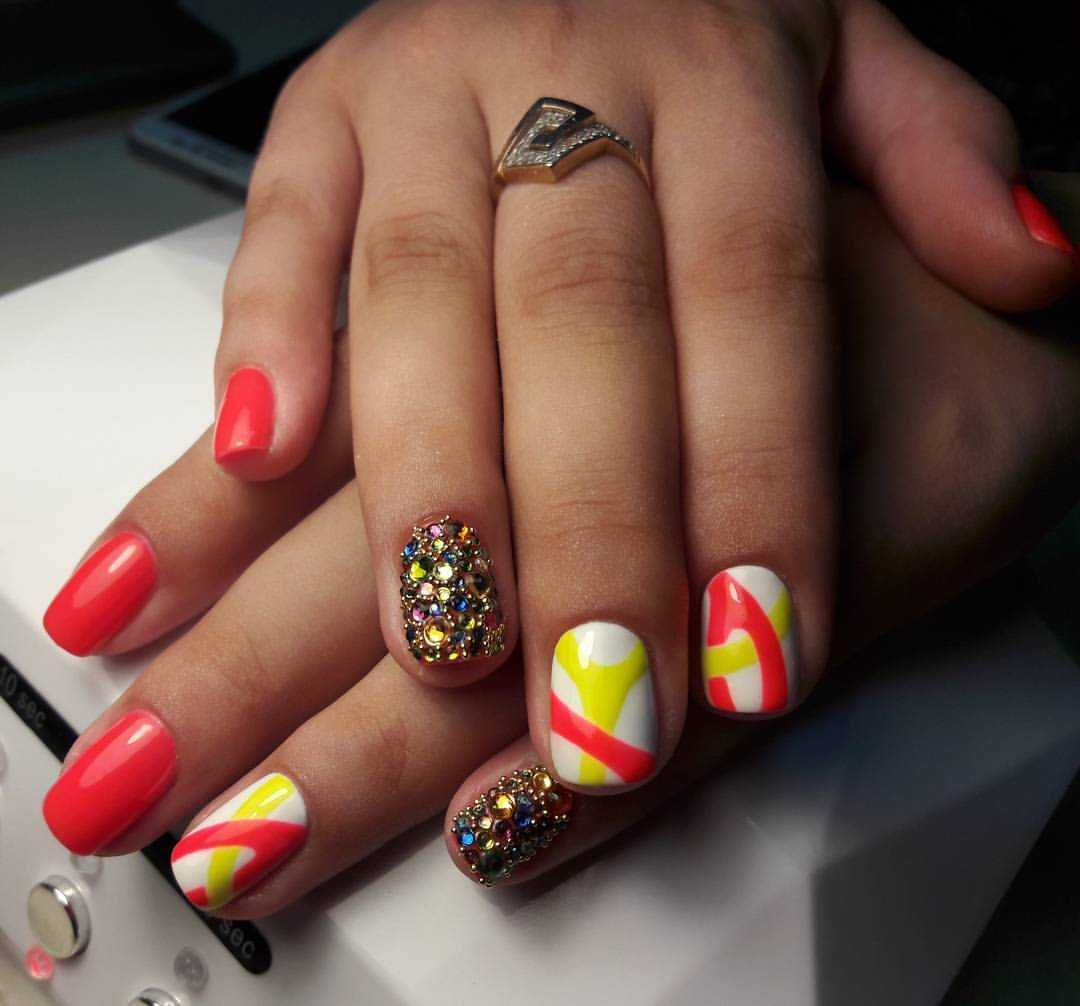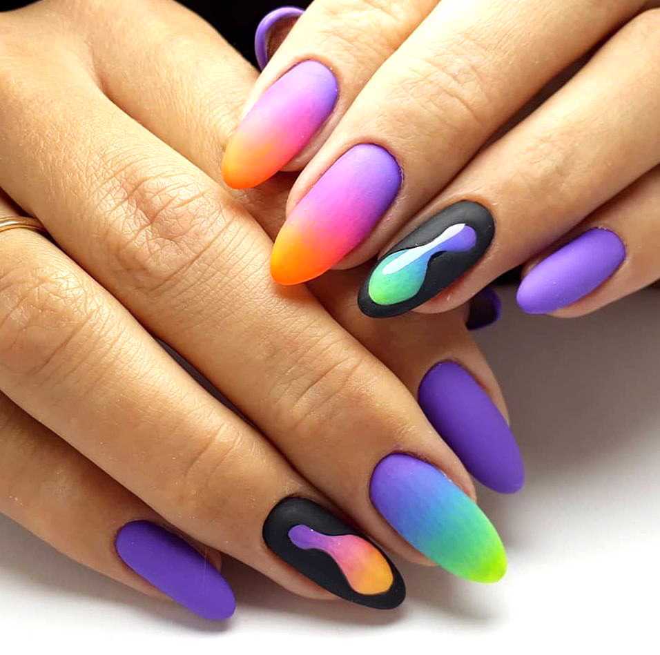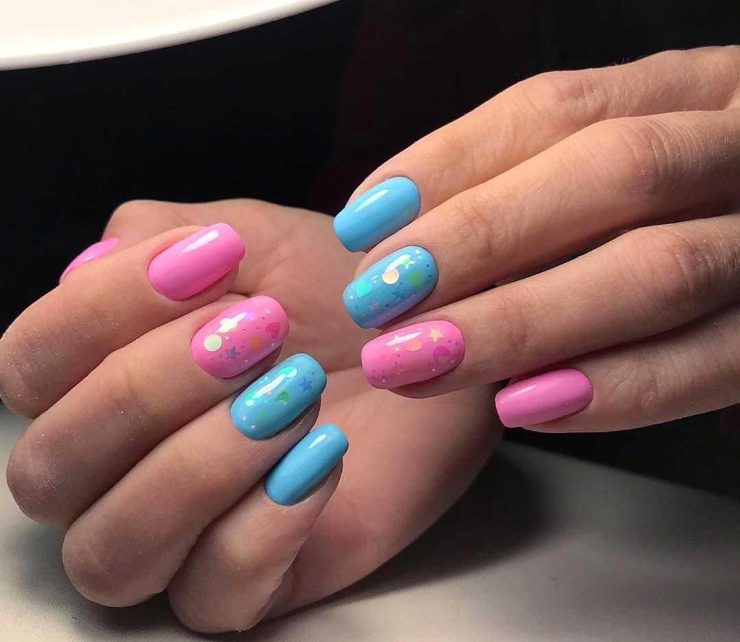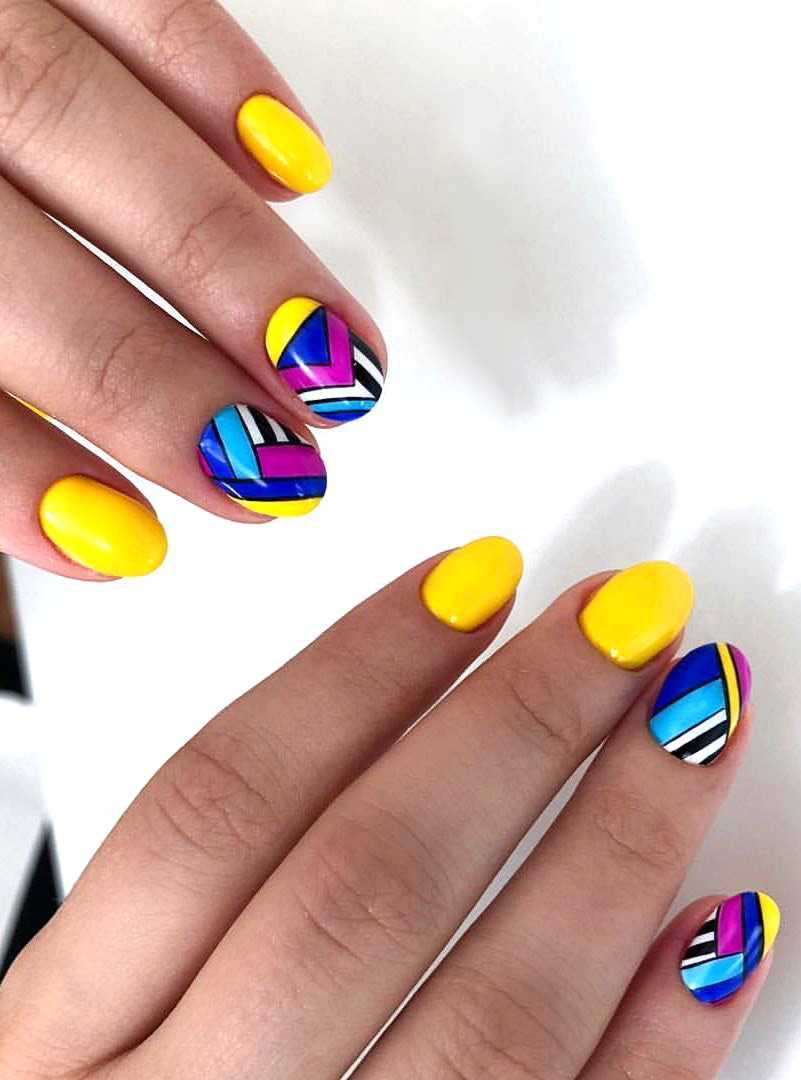 Разноцветный маникюр стал очень популярным благодаря своей универсальности. Любая модница без труда подберет аксессуары и одежду к таким ногтям. В грамотном исполнении такой маникюр легко впишется в самый строгий дресс-код или смело подчеркнет ваше светлое настроение в любую погоду. Спешим выбирать оттенки!