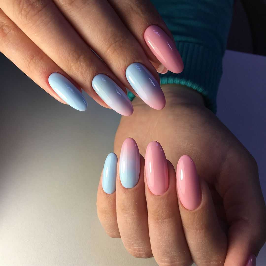 Что касается дизайна ноготков, то наиболее распространенным вариантом двухцветного маникюра является покрытие в пастельной цветовой гамме. Такие оттенки всегда хорошо между собой сочетаются, поэтому такая идея точно понравится новичкам.