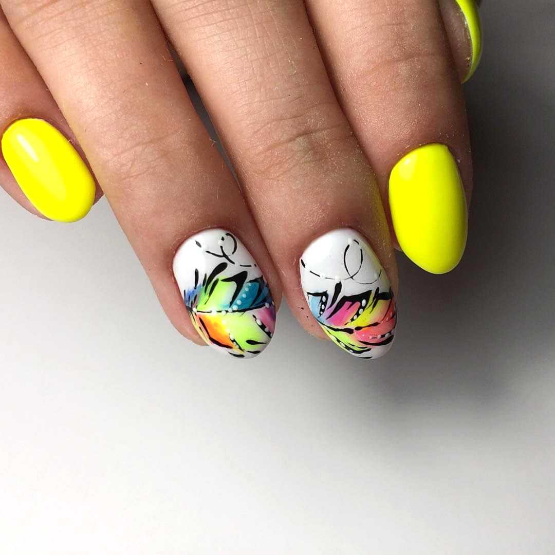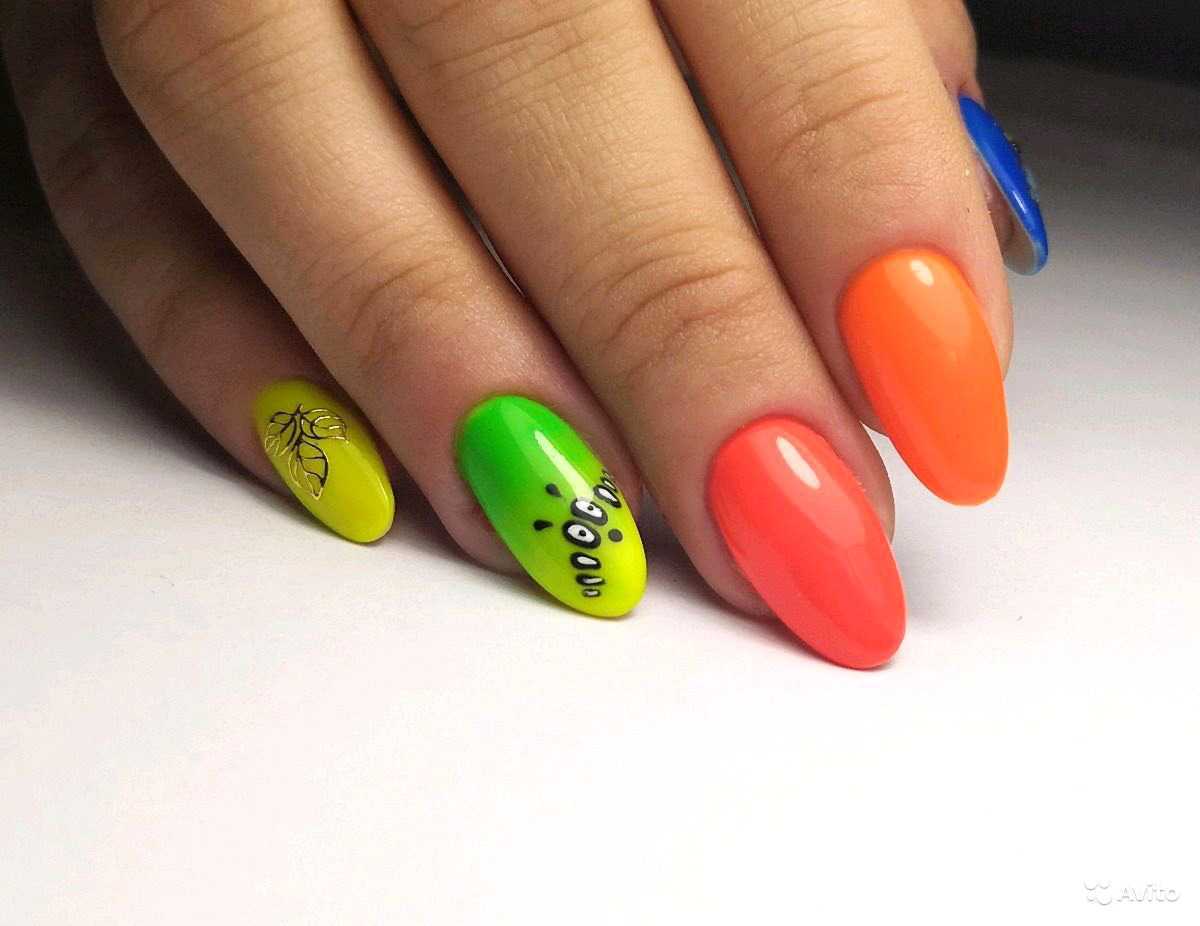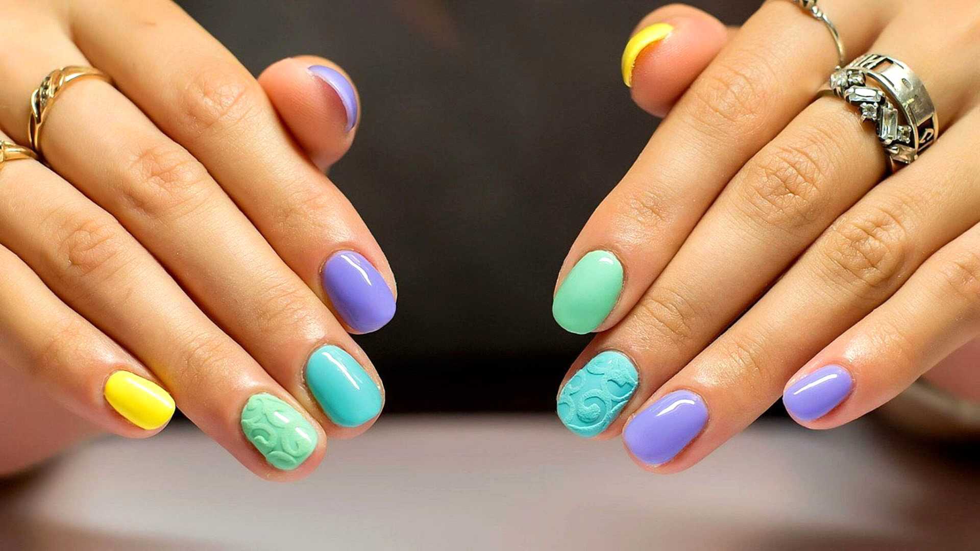 Нюдовый маникюр с объемной текстурой (дизайн пластилином, цветочный, вязаный) поможет создать уникальный образ. Неизменным спросом пользуется минимализм, техники дудлинг, абстракция. Дизайн ногтей без покрытия со стемпингом занимает минимум времени. Кислотные ногти разных цветов на пальцах помогут создать яркий образ.