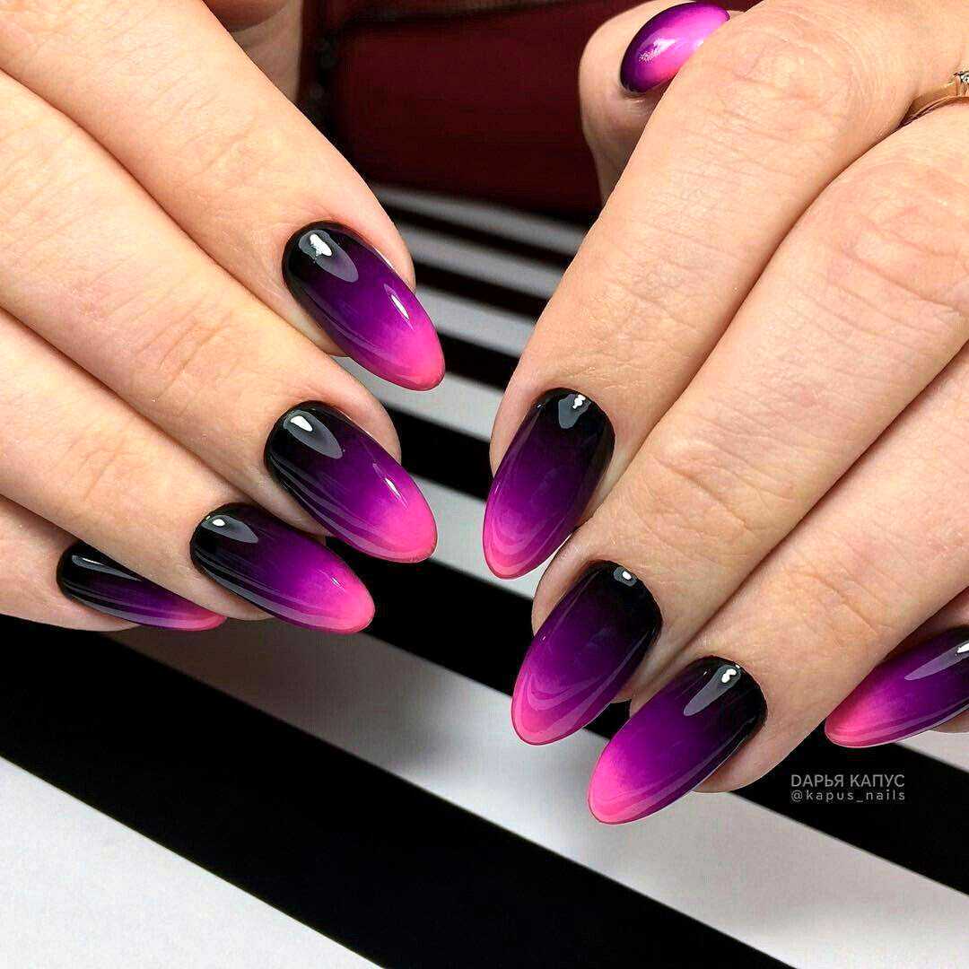 Градиентный – плавный переход из одного цвета в другой при помощи прорисовки всей градации оттенков. Несколько упрощенный вариант – техника омбре, подразумевающая использование лишь 2-3 оттенков.