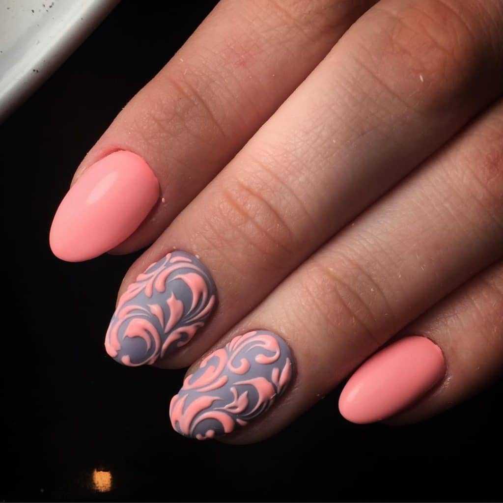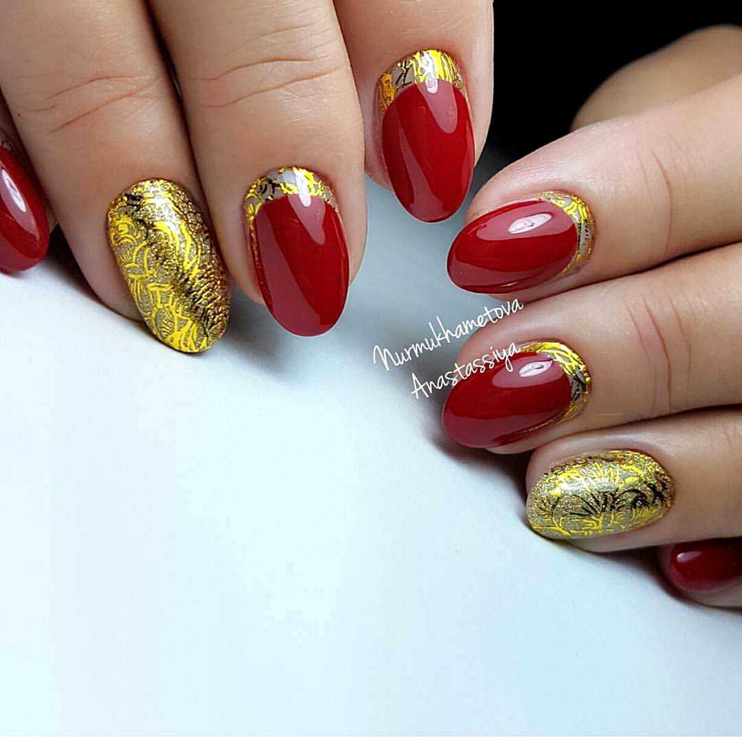 Множество интересных разновидностей получают комбинированием цветов. Интересные завитушки рисуют кистью, можно использовать стемпинг для этих целей.