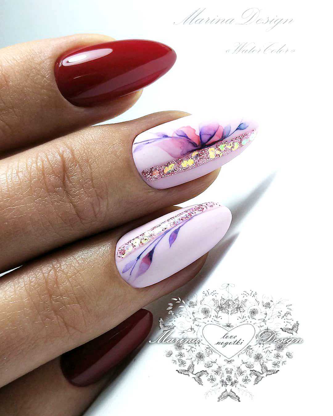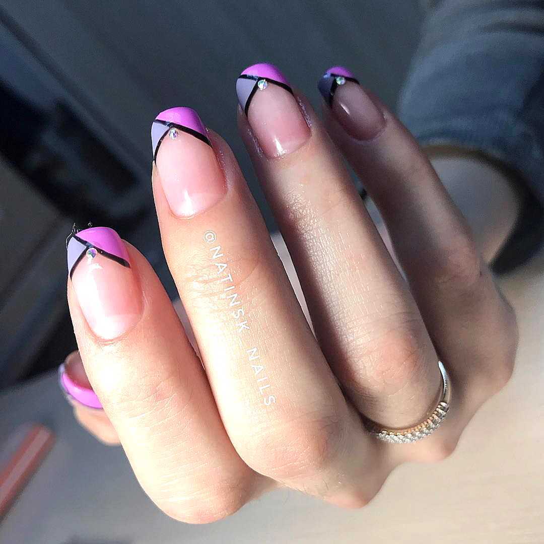 Как видите, двухцветный маникюр – это не только однотонное покрытие. В 2018 году будет актуальным довольно большое разнообразие вариантов дизайна. Поэтому смело экспериментируйте, сочетайте оттенки и результат вас точно порадует.