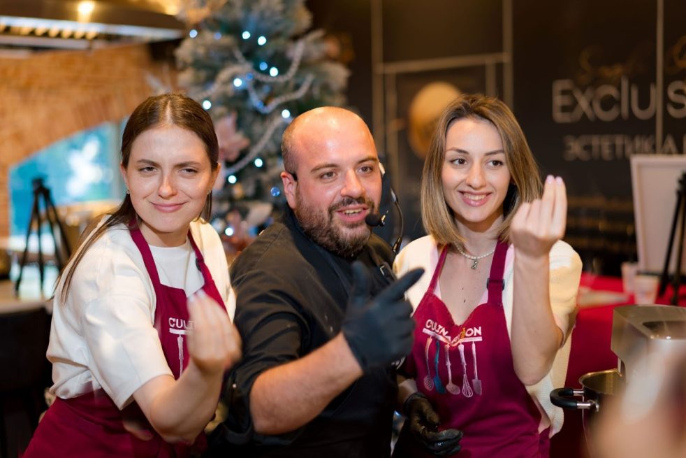 Преподаватель показывает технику, рассказывает о нюансах, подсказывает, как исправить ошибки и как лучше сервировать блюдо.